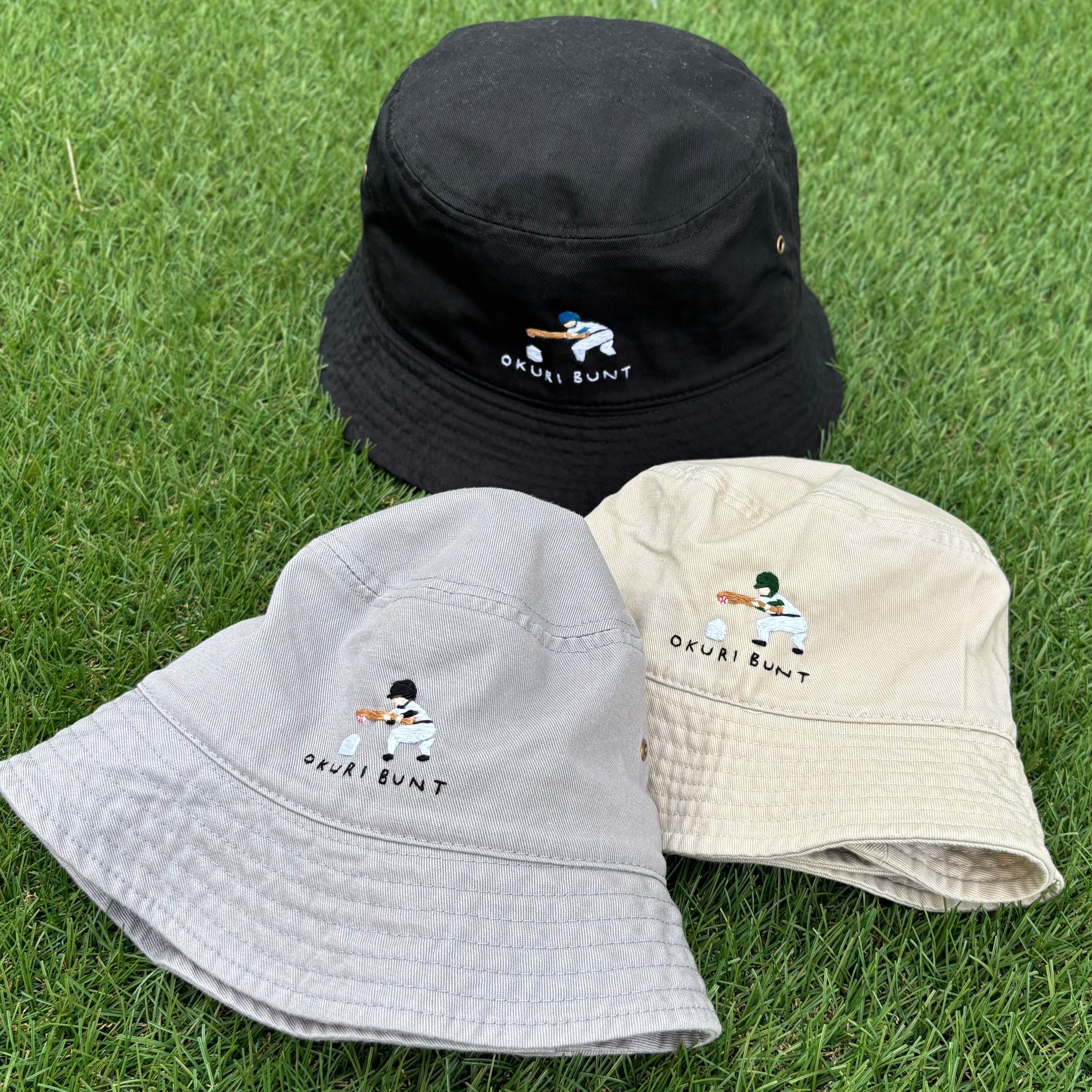 送りバントの手刺繍バケットハット
