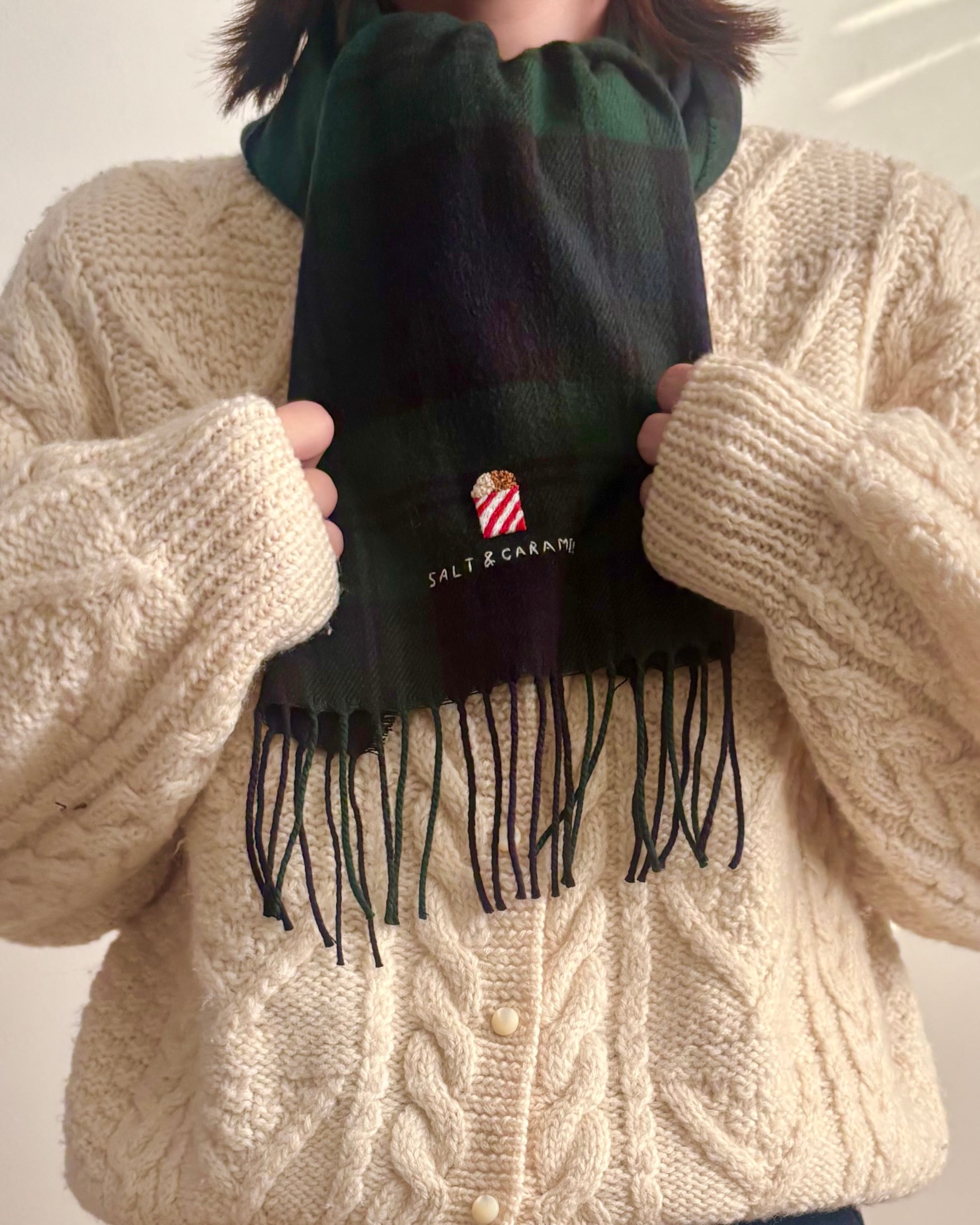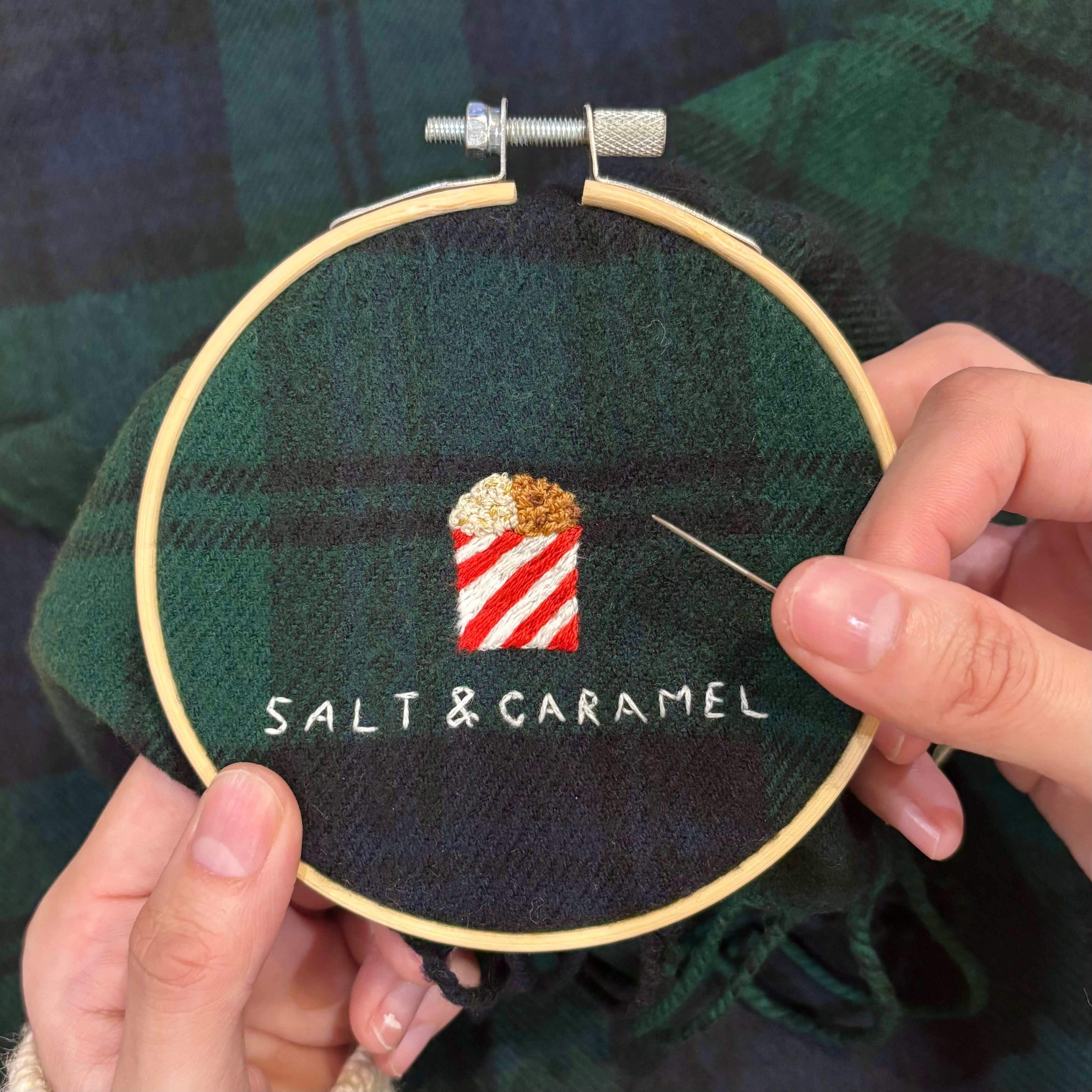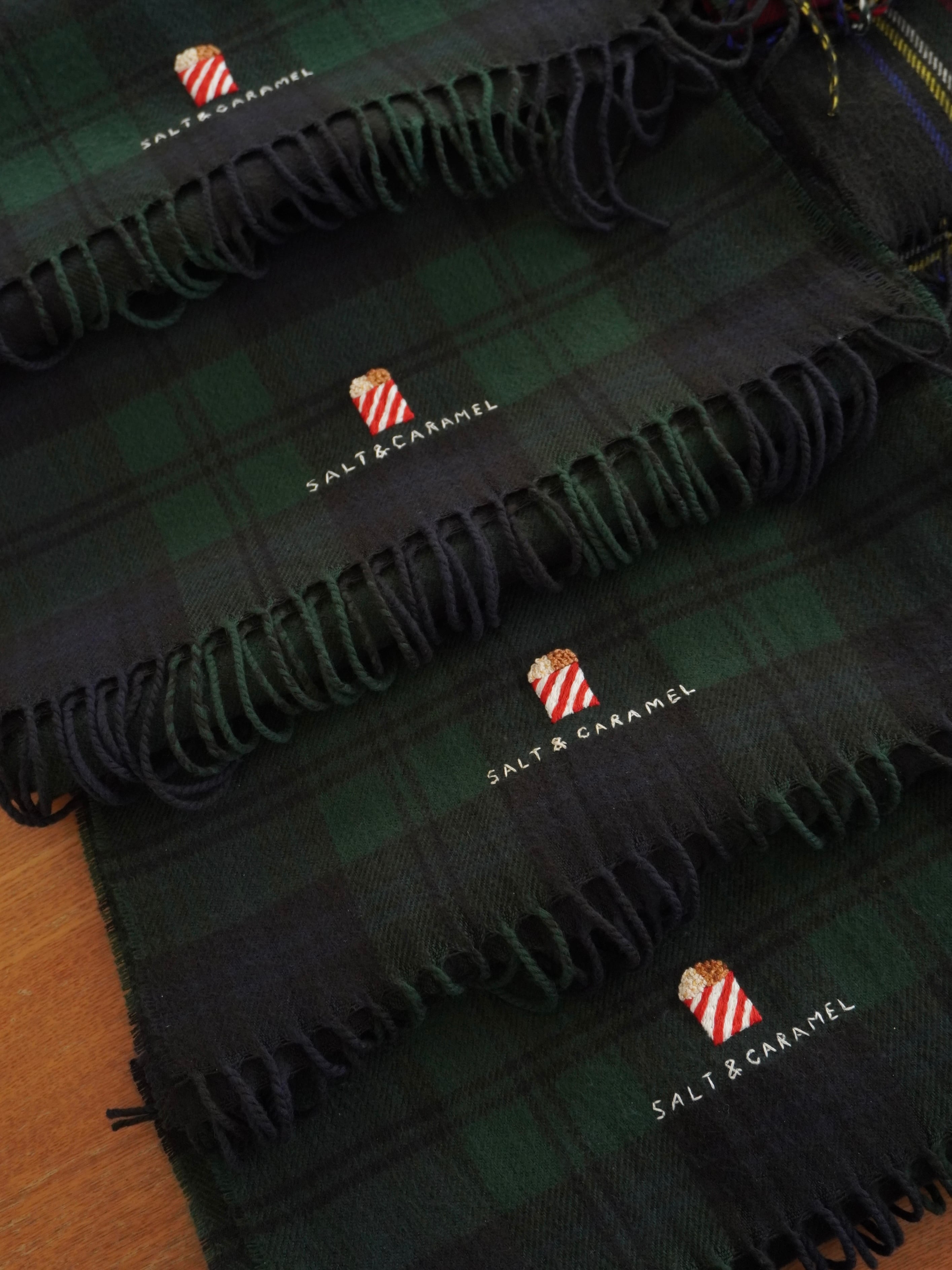 映画館のポップコーンの手刺繍マフラー